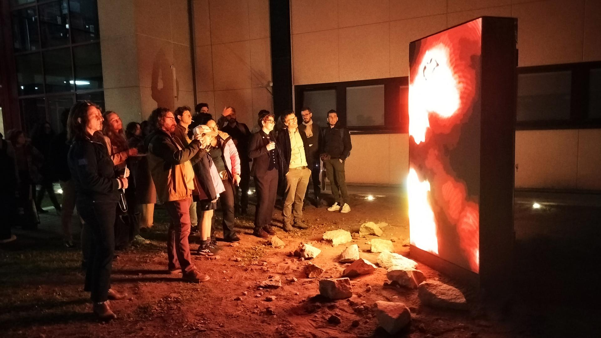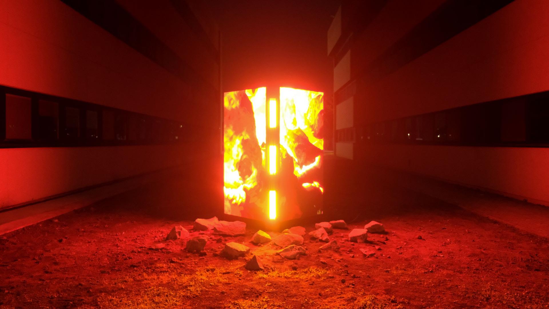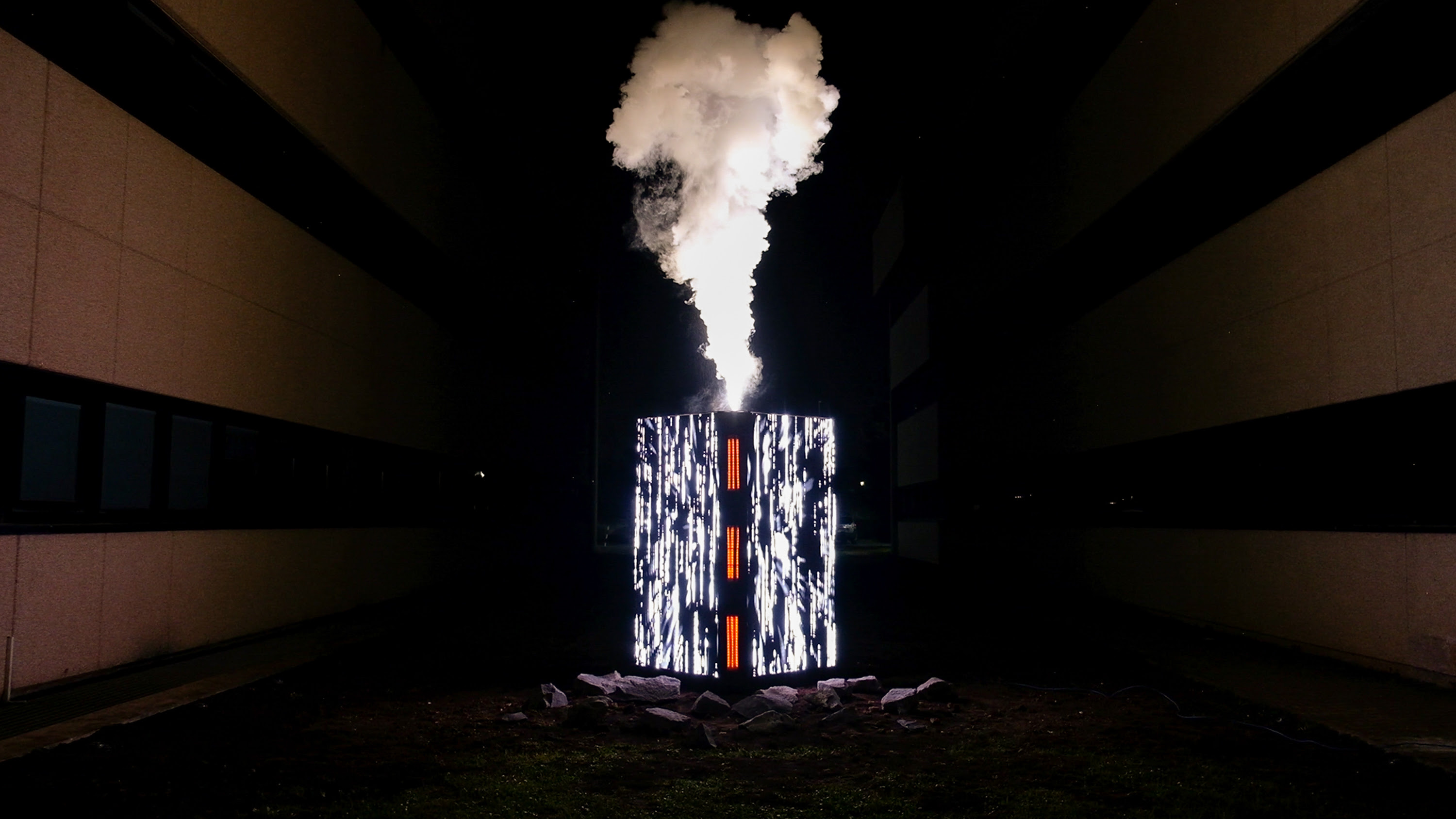 L'installazione si presenta come un monolite digitale composto da due pareti LED verticali, superfici specchianti, elementi riscaldanti e campioni di roccia estratti da oltre 1.000 metri di profondità. Le due pareti LED sono state realizzate utilizzando otto pannelli PROLIGHTS SigmaPix 39T1X2WF - schermi LED da esterno con passo pixel di 3,9 mm, progettati per un montaggio rapido e configurazioni creative.