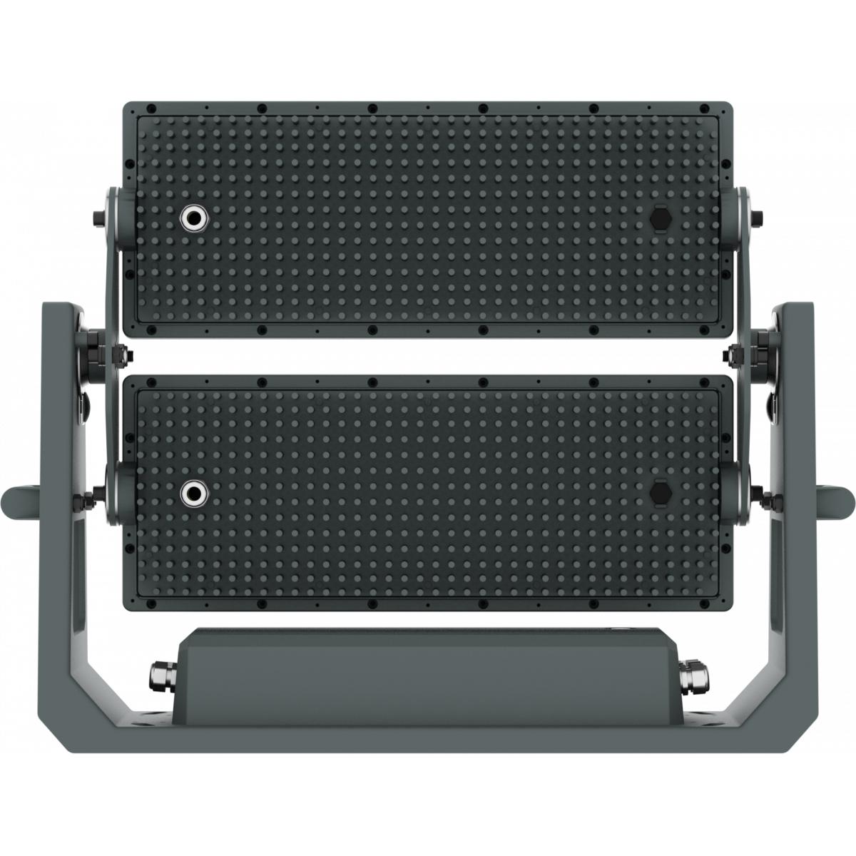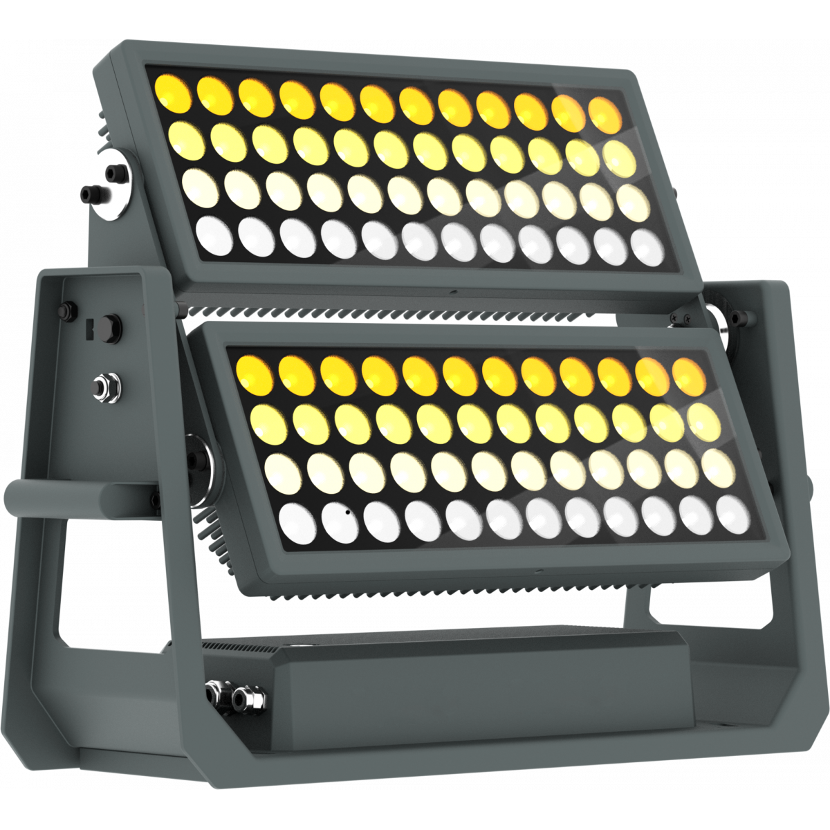 ArcPod 96Q is a two-headed bright outdoor wash light, designed for large scale outdoor installations and long throw projection. Equipped with 96x10W RGBW/FC LEDs, delivering a superior colour mixing and extreme brightness with two different optics on each head (10° top and 15° bottom). Despite its bright output, it was designed with a slim size, and offers a wide range of optics selection that can be customised or change to different options on each single head. This makes the ArcPod 96Q an indispensable architectural lighting fixtures for larger setups.