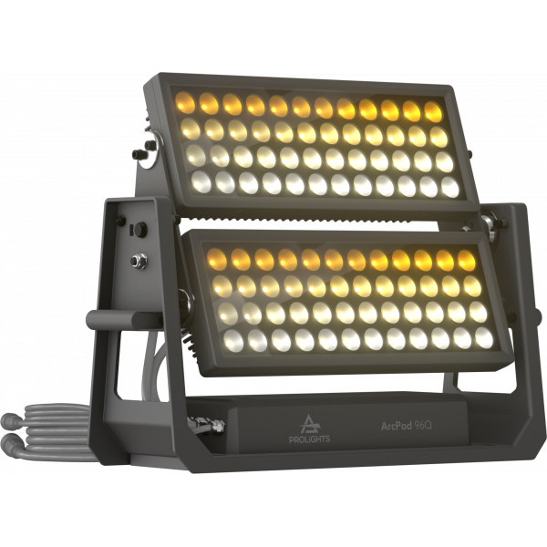 ArcPod 96Q is a two-headed bright outdoor wash light, designed for large scale outdoor installations and long throw projection. Equipped with 96x10W RGBW/FC LEDs, delivering a superior colour mixing a...