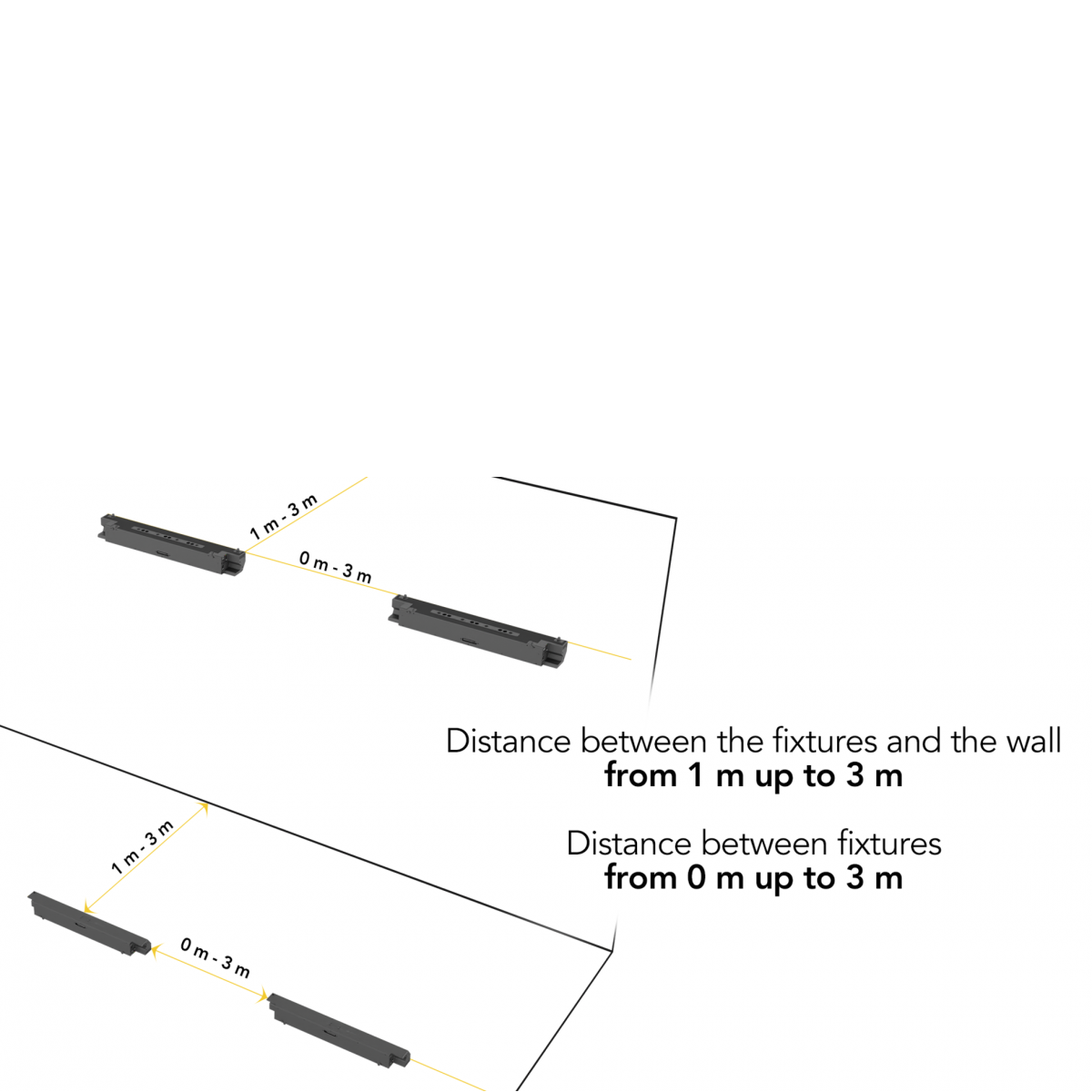 • Ampio fascio asimmetrico per installazione modulare a diverse distanza tra fixtures
