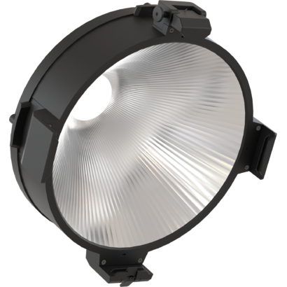 Per le applicazioni che richiedono la massima potenza, il proiettore può montare riflettori open‑face opzionali da 30° e 60°, aumentando il flusso luminoso e preservando un'omogenea miscelazione dei colori.