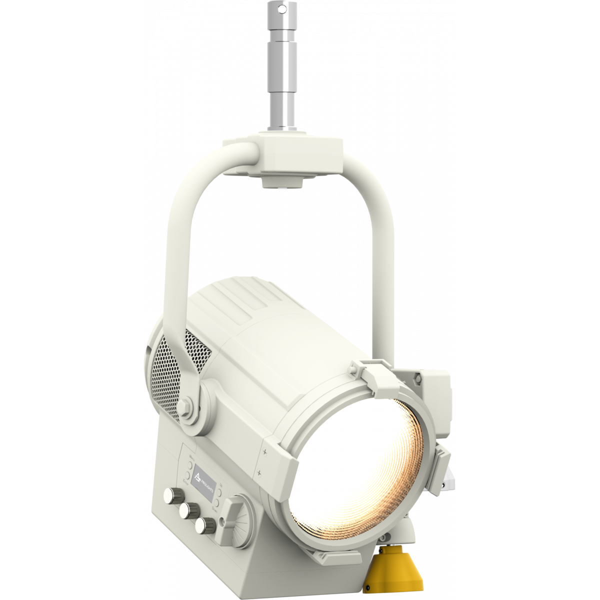 The EclFresnel JrVW is a compact LED Fresnel lamp, designed as a replacement for a 600W fixture, with a bright and high-quality variable-white light, from 2,700K to 5,600K, using a 150W LED source.