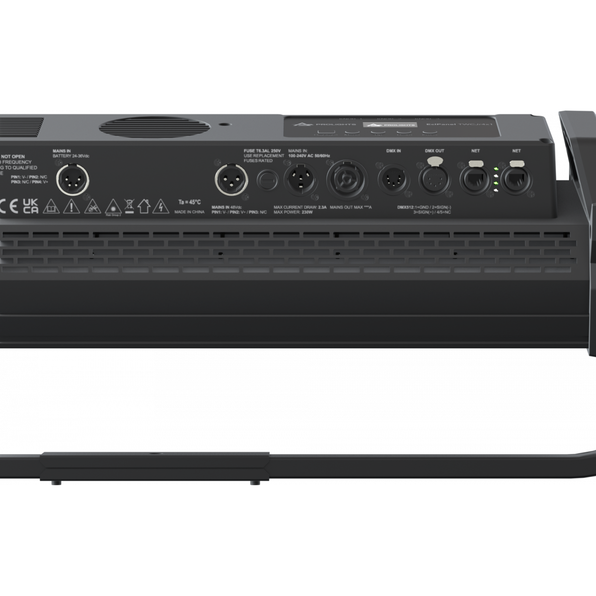 Despite its lightweight, it has an on-board driver, a built-in power supply, Wireless DMX (CRMX+W-DMX), network connectivity (Art-Net, sACN, Kling-Net) and low voltage inputs (24-36V and 48VDC)