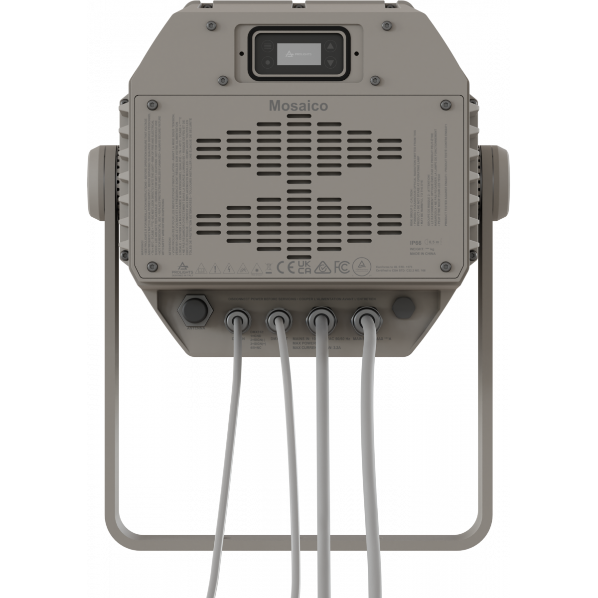 Mosaico is a powerful exterior LED image projector for projection of textures, images and logos onto buildings and landscapes. The outstanding 11'667 lumens output allows for replacement of the 1.200 HID fixture with this far more durable and advanced tool. The complete set of on board effects allow for extreme creative integration in any context and the zoomable optics makes it a truly versatile fixture for both near-field and long-throw installations.