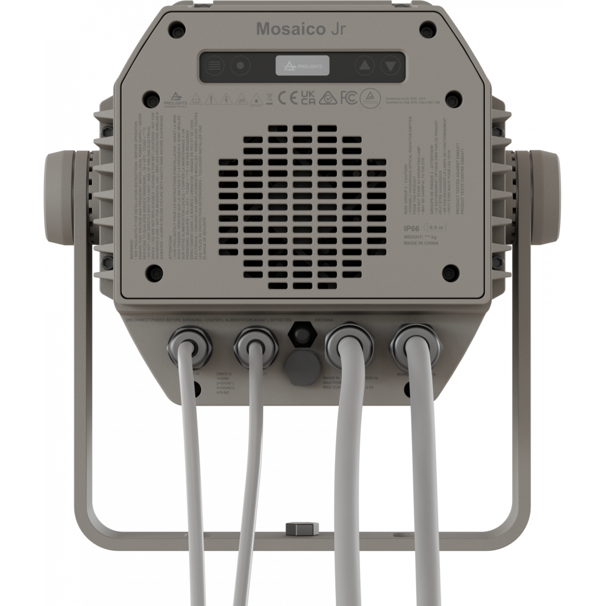 Mosaico Jr è un proiettore LED compatto, progettato per la proiezione di loghi, immagini e textures su edifici commerciali, hotel e facciate di palazzi. Le sue piccole dimensioni consentono di installarlo ovunque senza alcun impatto sull'ambiente o sull'architettura circostante. Lo zoom incorporato che va da 14,7° a 45°, permette una grande flessibilità d'uso oltre ad una proiezione nitida e accurata di loghi e textures.