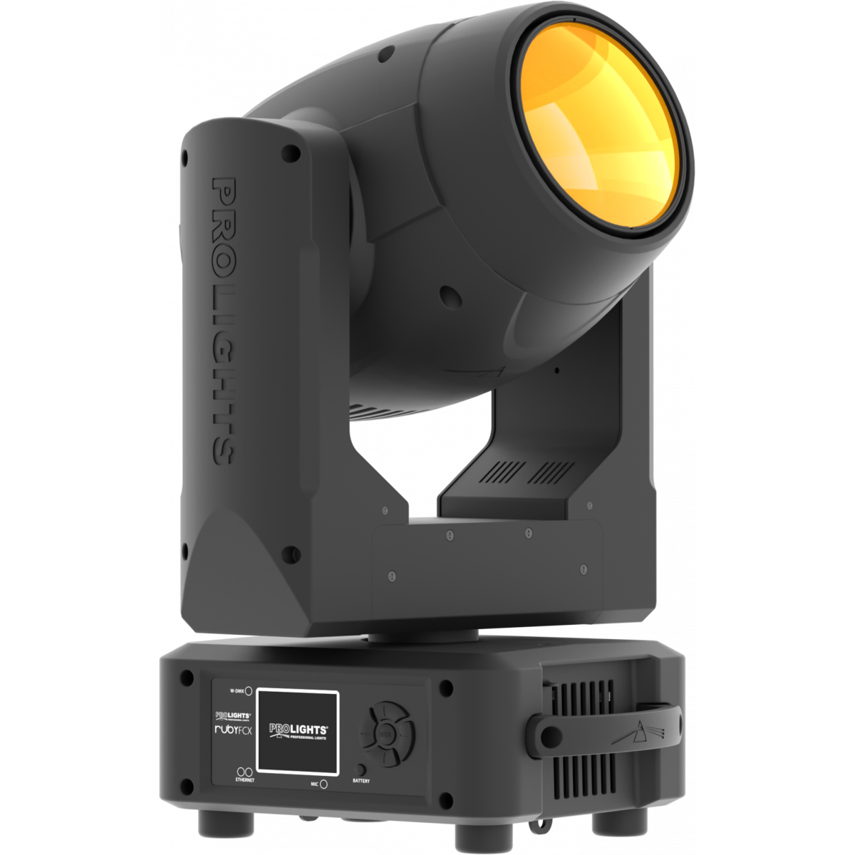 Ruby FCX è dotato di tutte le funzionalità di una testa mobile beam, come gobos, prisma lineare e circolare a 6 ed 8 facce, frost e una veloce rotazione infinita sull'asse di pan e tilt.
