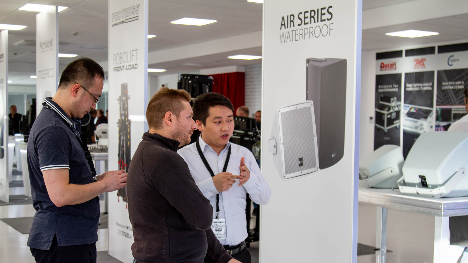 Then, in the afternoon, the doors of the new exhibition areas opened up; a complex of over 1000sqm, including a stage set up with 700 PROLIGHTS and TRIBE fixtures, Loudspeakers DAD, PROTRUSS facilities and a showroom, where the main solutions of each brand are represented.