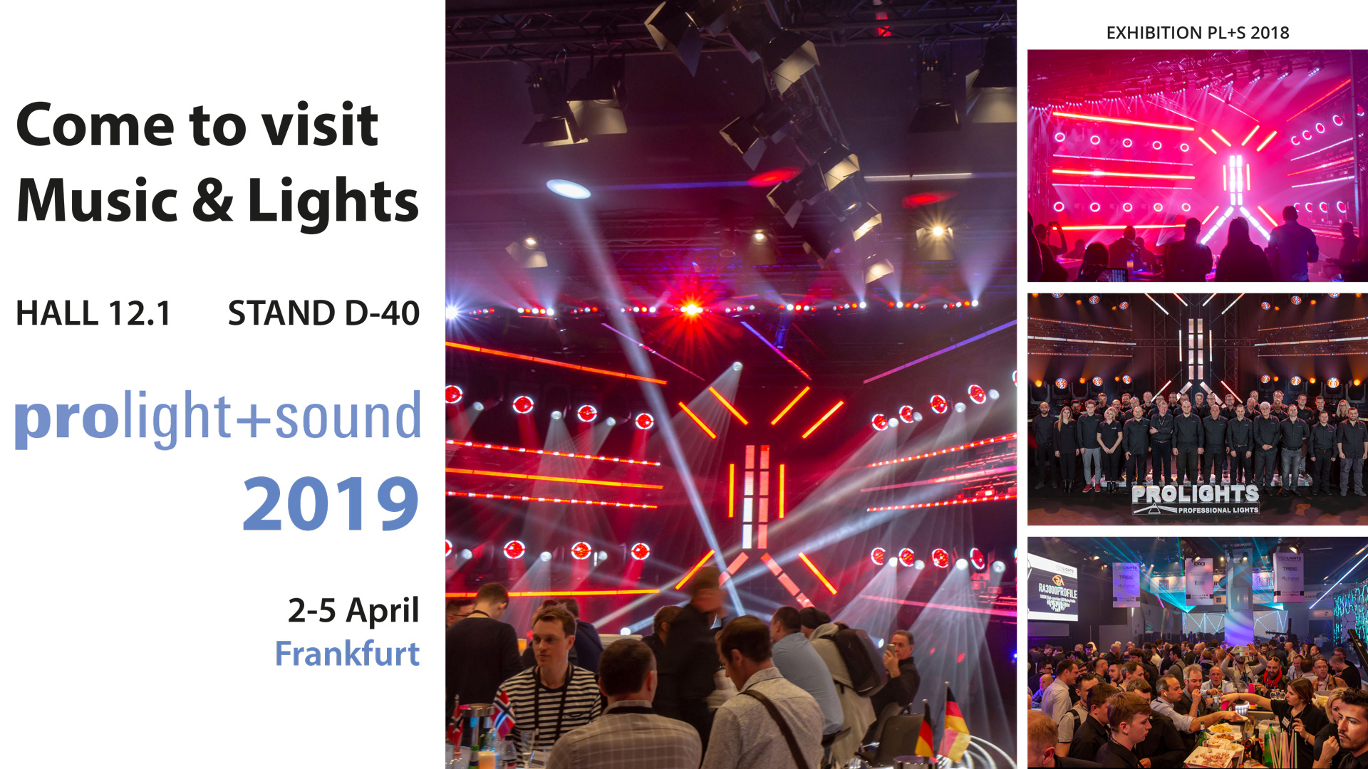 Germany - Music & Lights along with its lighting brands PROLIGHTS, TRIBE and ArchWork, will be exhibiting at the upcoming Prolight + Sound 2019 trade show in Frankfurt from 2nd – 5th April 2019 (Hall 12.1 stand D40). Predicted to be the most sensational PL+S yet for the group with approx 400 square metres of demonstration, meeting and display space.