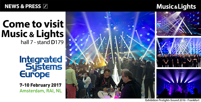 Music & Lights will take the field at next ISE 2017, displaying in its own booth the latest technologies and the main products ranges for each of its own brand.