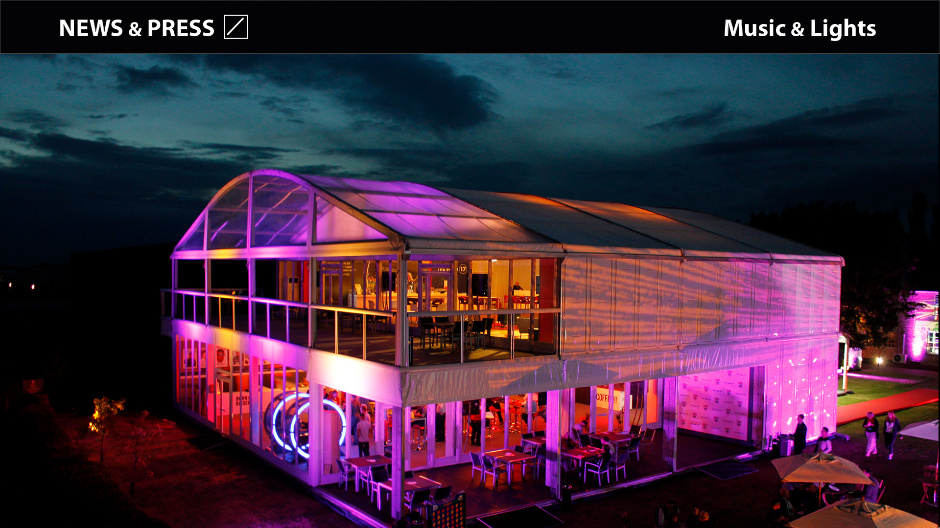 Diamond hanno fornito illuminazione statica durante il giorno. Nel corso della serata, gli stessi apparati di illuminazione hanno poi mostrato tutte le loro potenzialità a livello di effettistica e colore, creando un'atmosfera vivace e dinamica nelle aree bar, nelle aree dancing e nelle dedicate alle performance musicali live. Oltre 40 proiettori wash a LED ProLights