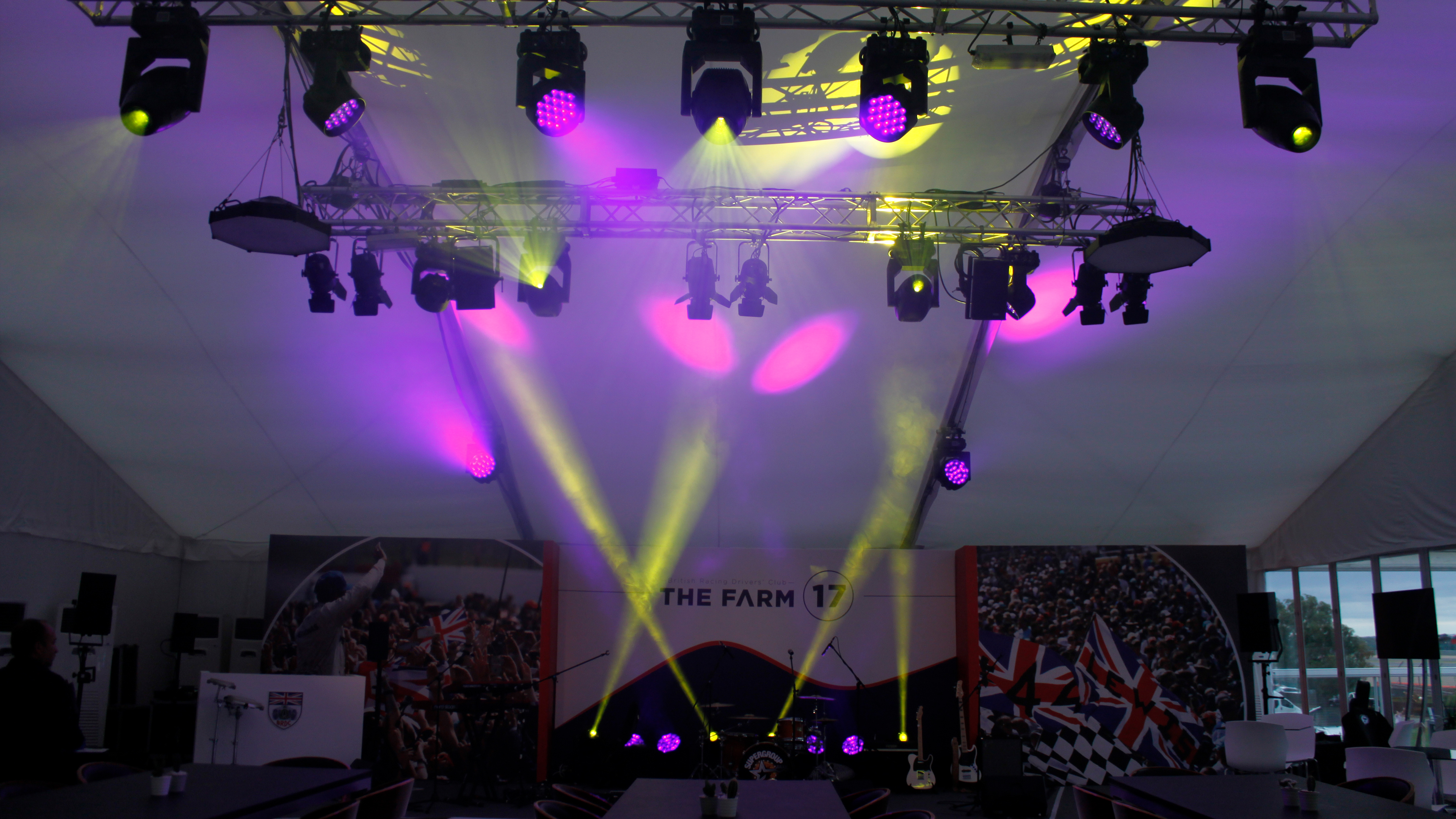 Lavorando a stretto contatto con il BRDC per sviluppare il tema dell'illuminazione per l'evento di quest'anno, AC-ET ha fornito i sistemi di illuminazione sia per gli ambienti interni che esterni, per un totale di circa 150 corpi illuminanti. Ciò ha ha comportato l'utilizzo di alcune delle ultime tecnologie statiche e mobili di ProLights, Il progetto è stato supervisionato dal direttore di produzione interno di AC-ET, Andy Walne Smith.