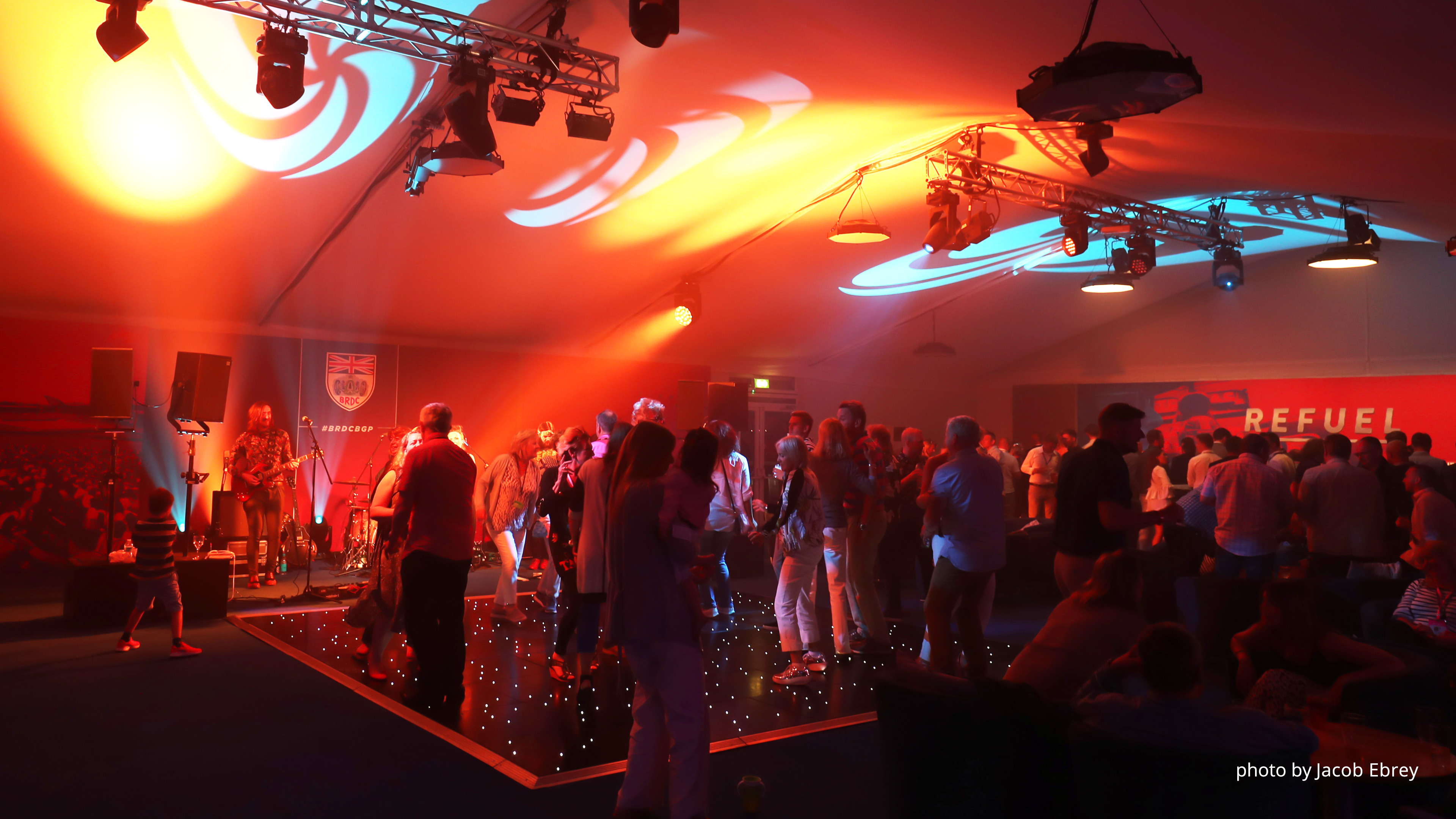 Inside, a variety of PROLIGHTS LED fixtures were used to create a lively and vibrant atmosphere. These included LUMA700 projecting 'BRDC' branding, plus JETSPOT4Z and STARK1000 bringing the live band and DJ to life.