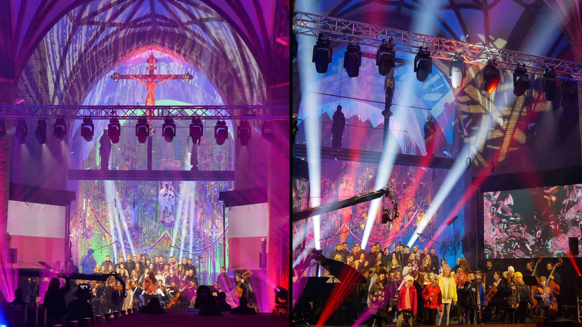 Luma 1500SP per riempire i lati della chiesa e completare lo scenario con le animazioni e i fantastici gobo, proiettati sul soffitto ", ha affermato Konrad Ingielewicz, Direttore tecnico di Grupa Profit. Ha aggiunto: "Li abbiamo scelti per il loro spettro colori, la regolazione lineare (necessaria per la trasmissione televisiva) la silenziosità e la potenza di uscita molto elevata a fronte di un basso consumo energetico.