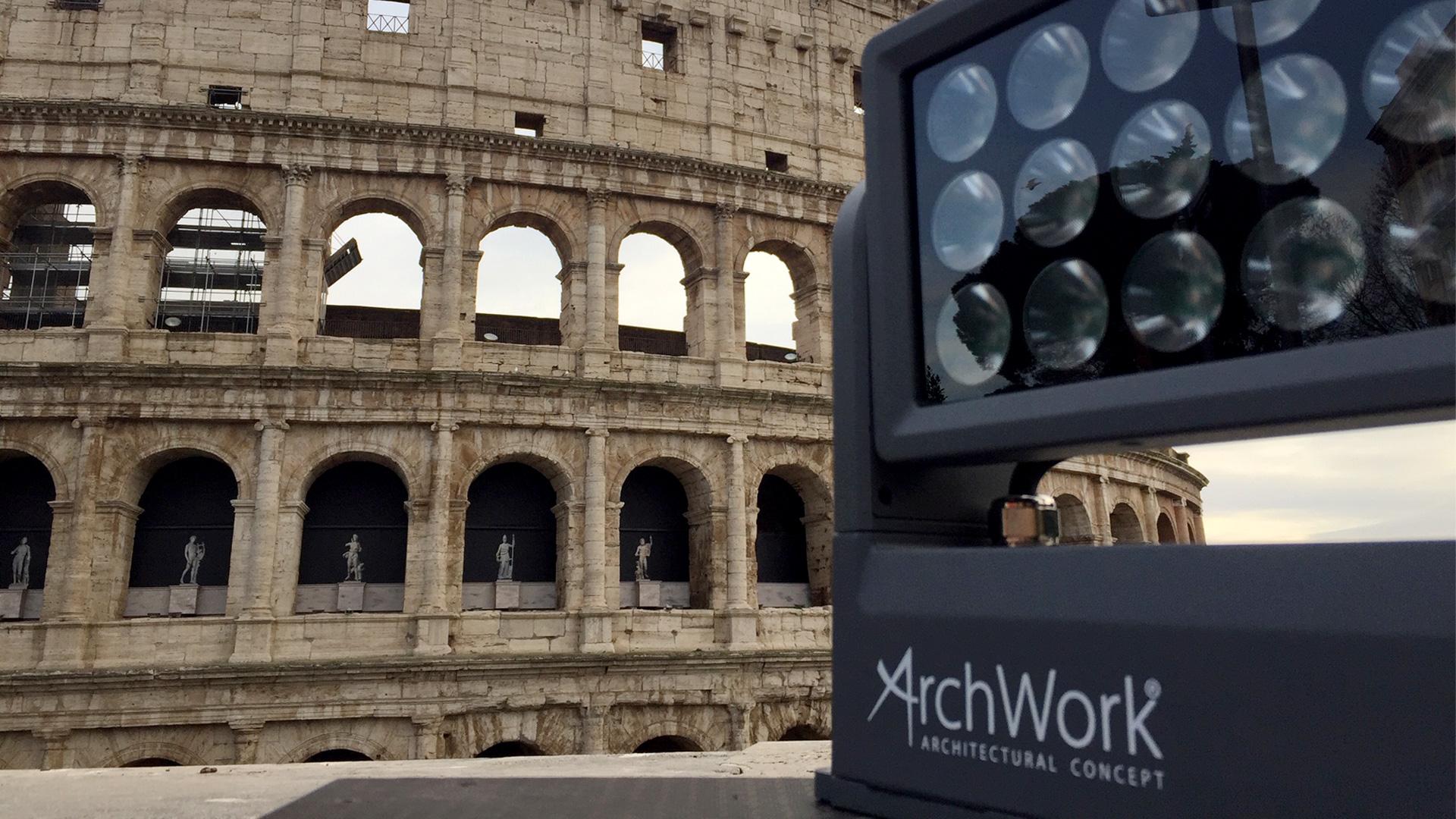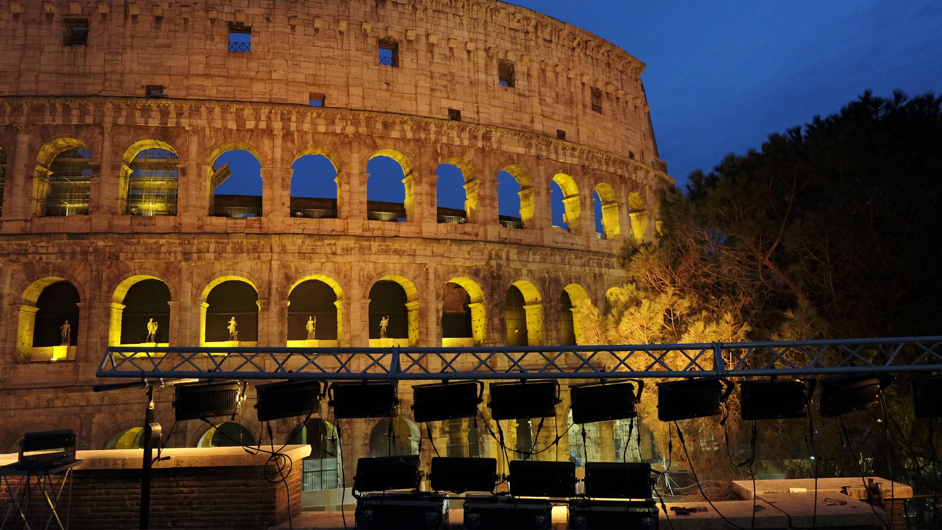 A total of six landmarks were lit up in Italy, including the famous Colosseum in Rome, which was switched on at 17h30 and stayed bright until midnight. Claudio Strolighi was hired by the event producers to supply the equipment: “We used 19x PROLIGHTS Solar fixtures, along with 3x ArcPod 36FC and 4x ArcPod 27Q,” said Claudio. He added: “We needed IP rated fixtures as it's still very cold and wet in January, with a good rigging system for the structure that we had to bring.”