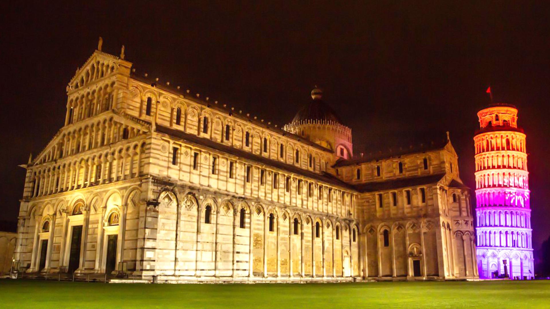 The Tower of Pisa was also illuminated by Sandro Iovino using 8 Solar 27Q floods and 8 EclProfile FC with 26º and 36º lenses, with kit supplied by LS Service Luciano Spera.