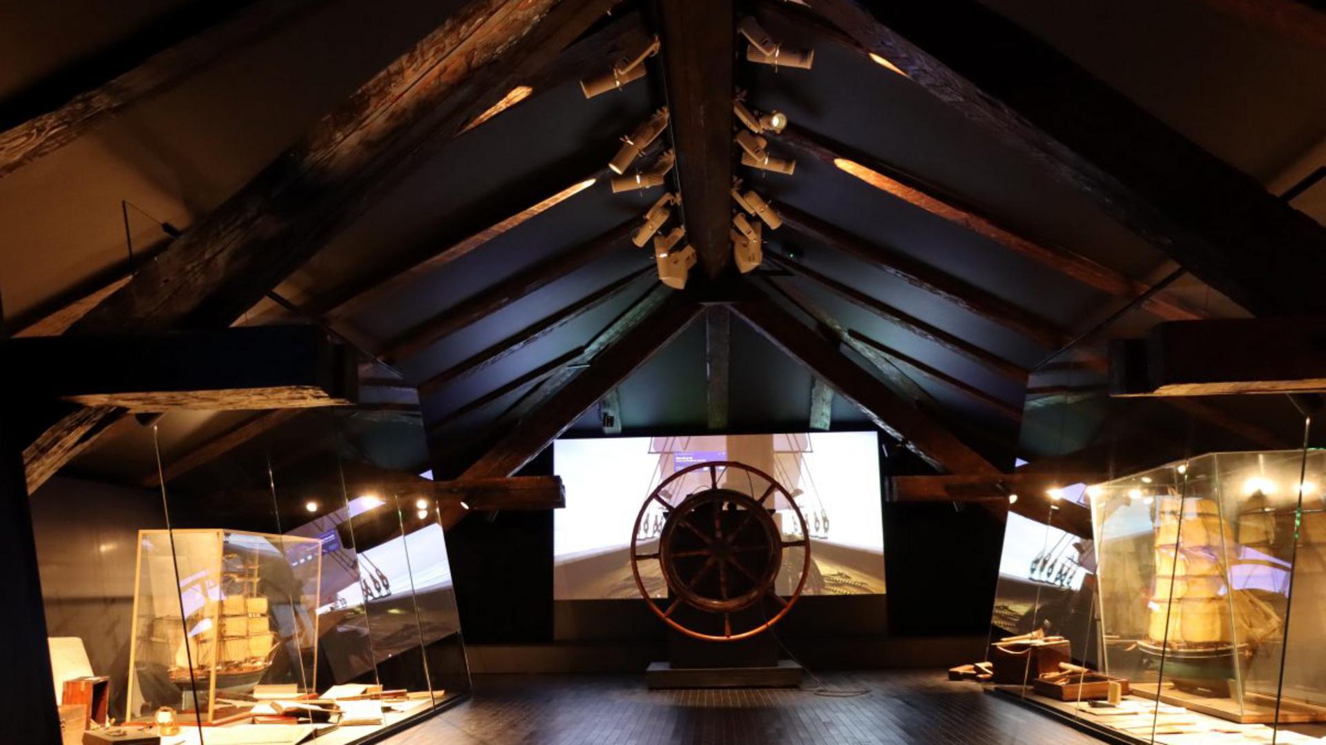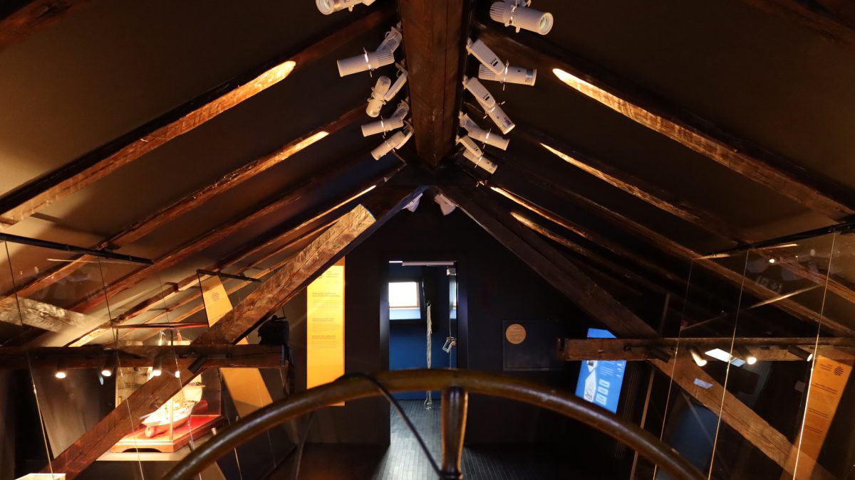 The interpretive center was designed as a journey through sea, land, and sky, organized within The Sailors' House across four thematic units: the ground floor, representing the sea; the first floor, representing the land; the attic as the sky; and the stairs as the journey that visitors undertake between these three elements.