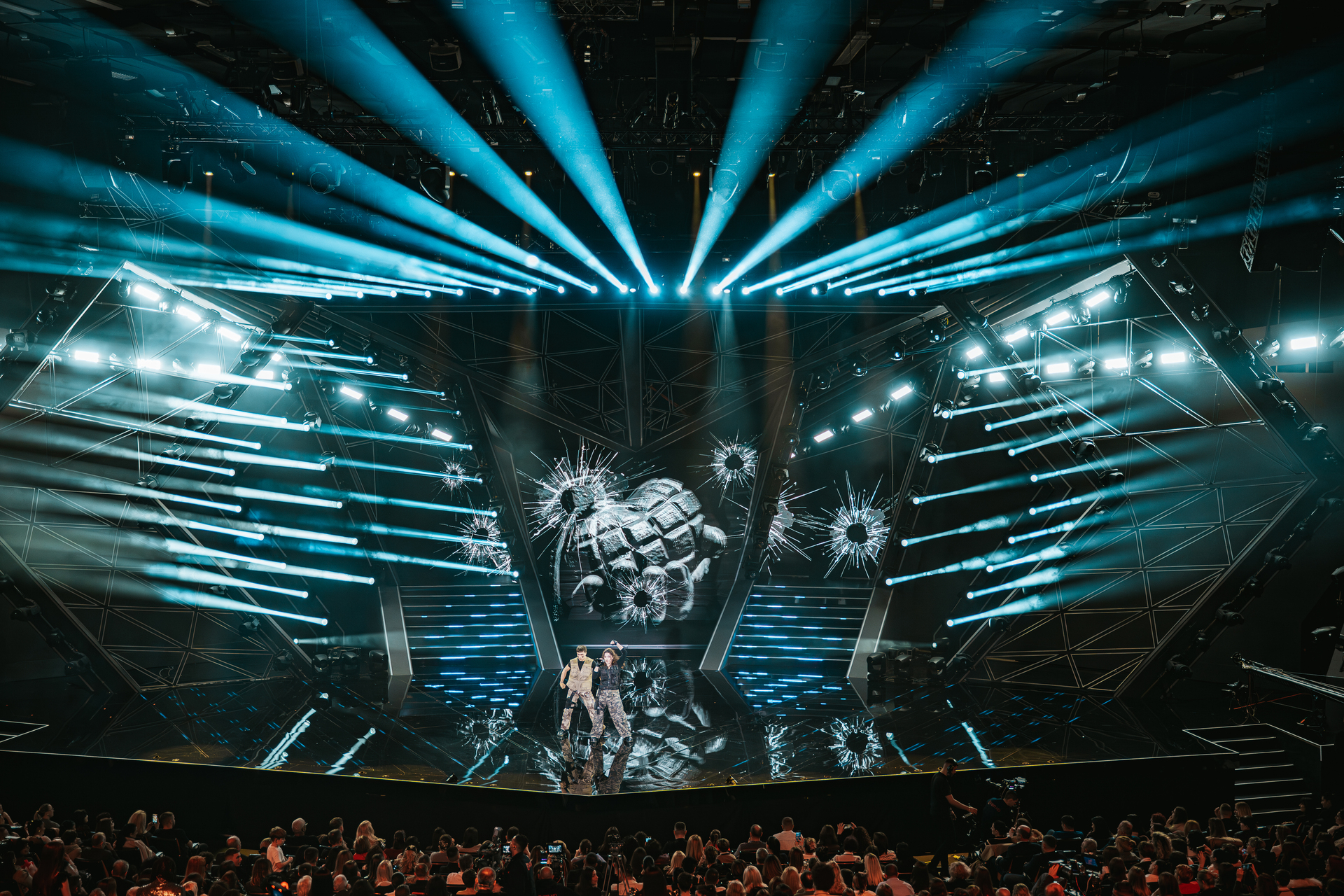 Il lighting design si è integrato perfettamente nella scenografia definita da elementi grafici e costruita attorno a grandi forme geometriche e luminose che hanno definito la scena. Per ottenere l'impatto visivo che ha caratterizzato la produzione, l'illuminazione del palco è stata ulteriormente arricchita da 50 sagomatori EclProfile FS, 60 Stark 400, un wash LED con zoom lineare e controllo pixel, 25 barre LED Lumipix 15IP e 20 LumiPix 12UQPRO.