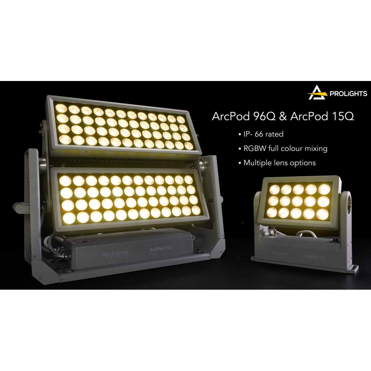 ArcPod 15Q è un proiettore wash compatto outdoor, con alta intensità e una vasta gamma di colori nonostante le dimensioni ridotte. Dotato di 15x10W LED RGBW / FC, fornisce un output eccezionale di oltre 5'900 lumen. La forma sottile e la vasta gamma di ottiche disponibili, rendono ArcPod 15Q un proiettore architetturale incredibilmente flessibile, adatto ad affiancare le versioni più grandi nelle installazioni più grandi o per essere impiegato in progetti più piccoli.