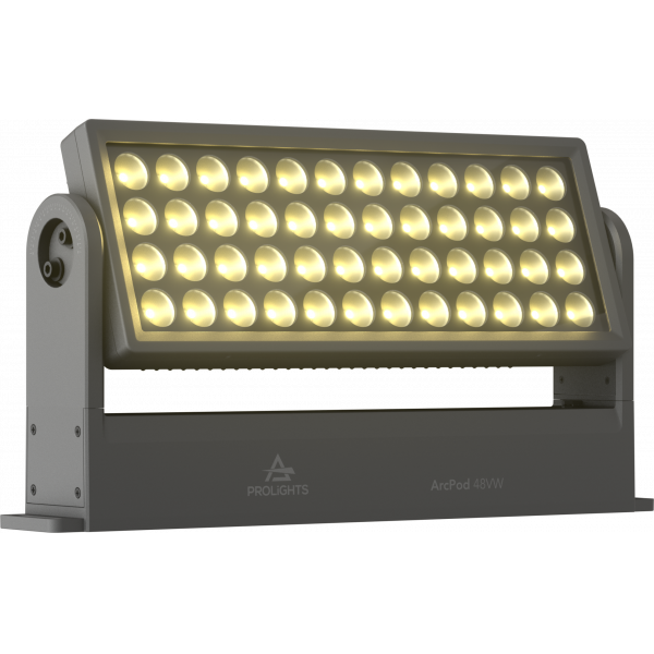 ArcPod 48VW è un wash da esterno compatto e potente, che offre una straordinaria luminosità di 46'000 lumen. E' composto da LED VW 48x10W, che offrono una riproduzione infinita dei bianchi. ArcPod 48VW è dotato di un design sottile ed'è privo di ventole, completato da un'ampia selezione di ottiche disponibili, che rendono ArcPod 48VW un dispositivo incredibilmente flessibile e versatile per qualsiasi installazione outdoor.