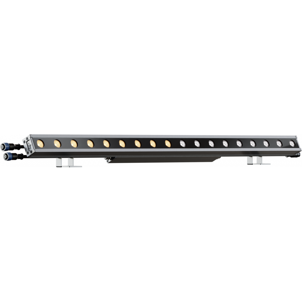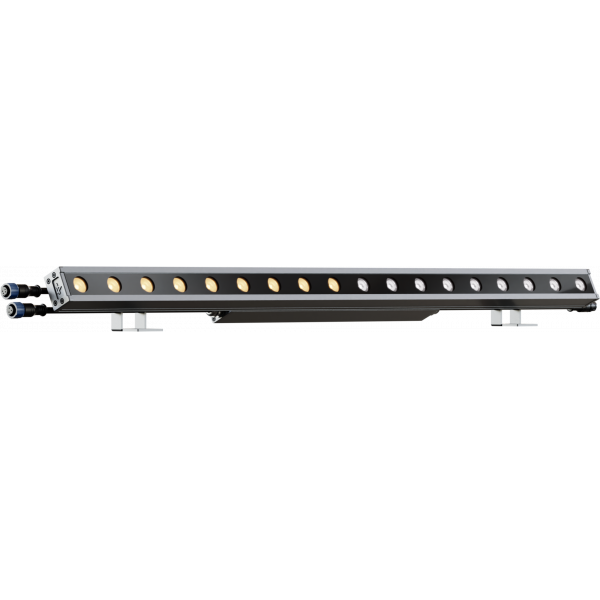 There are two sizes available, one with 18 LEDs (100 cm) and the other with 9 (50 cm) LED emitters, 2W each, with Variable White colour mixing. Its die-cast aluminium body with tempered glass make them perfect additions to urban structures or historical buildings.