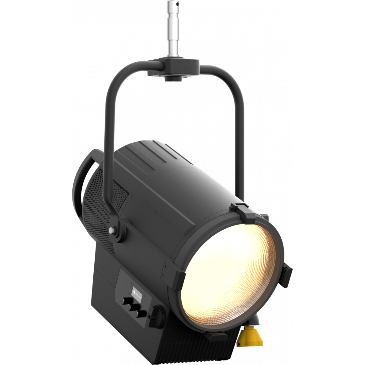 EclFresnel 2KVW è una potente lampada LED Fresnel, progettata per sostituire un apparecchio da 2,000 W, con una luce bianca variabile brillante e di alta qualità, da 2,700 K a 5,600 K, utilizzando una sorgente LED da 500 W.