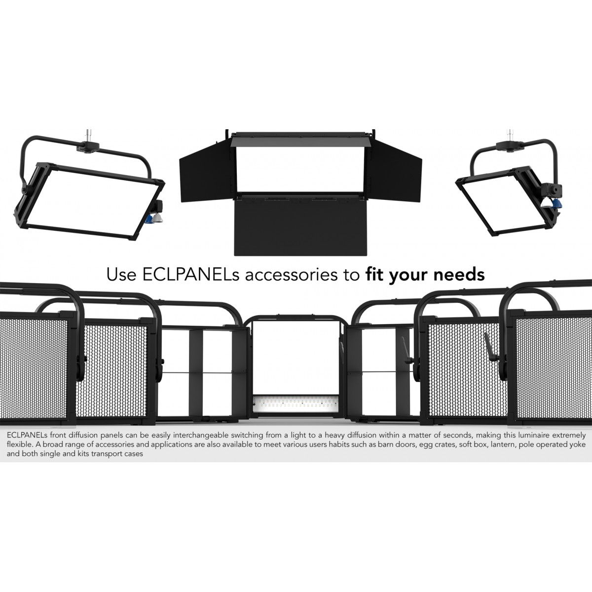 The EclPanel TWCJr allows for quick and accurate local adjustment of light through 3 rotatory knobs with three fully featured modes: CCT with +/- green shift, HSI for total control of hue, saturation and intensity, FX mode to access the on board pixel cinema effects.