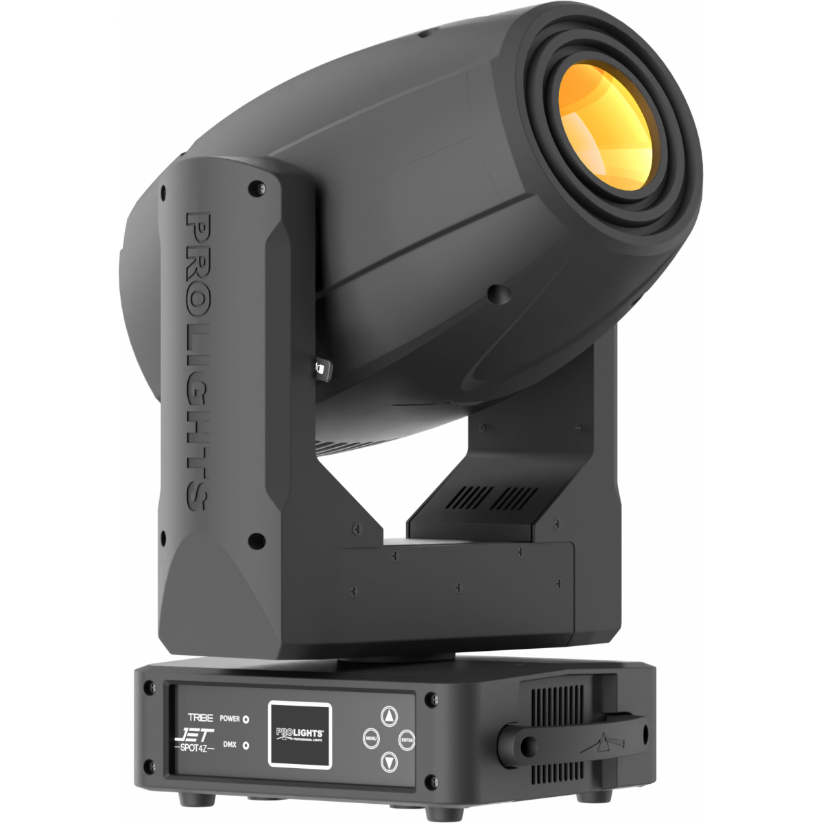 Jet Spot4Z è una testa mobile spot LED con sorgente 180W 6.800 K, progettato per sostituire un proiettore a scarica da 700W all'interno di teatri, sale da concerto e altre venues. Le sue dimensioni compatte consentono l'utilizzo in locali con soffitti bassi senza rinunciare allo zoom. Il suo sistema ottico offre un output costante con una proiezione nitida e uniforme dei gobo su tutta l'escursione dello zoom da 11° a 38°.